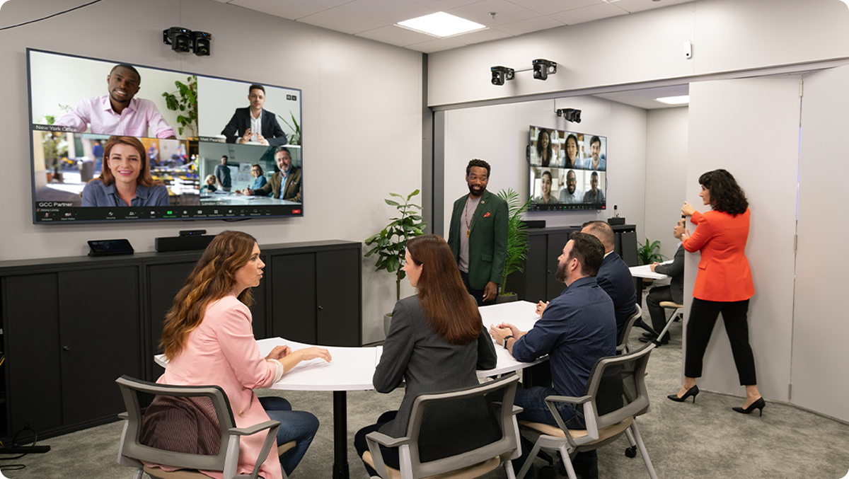 Weltpremiere der Demo! Wir haben unsere erste kollaborative Raumlösung vorgestellt, die für eine standardisierte, schnelle Inbetriebnahme konzipiert ist. Mit einer völlig neuen Reihe spezieller Hardware und einer einfachen webbasierten Anwendung, die die Konfiguration beschleunigt und konsistente, wiederholbare Inbetriebnahmen unterstützt.
