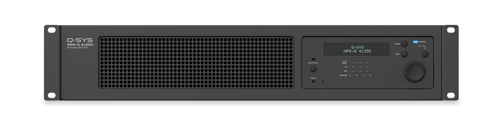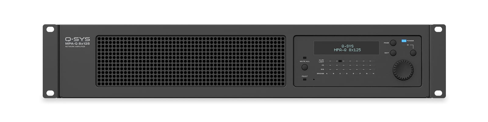 Die vernetzten Q-SYS Endstufen der MPA-Q-Serie werden von der Q-SYS Full Stack AV-Plattform angetrieben, die Daten, Geräte und eine Cloud-orientierte offene Architektur vereint, um eine vollständig integrierte Audio-, Video- und Steuerungslösung zu bieten, die eine einfachere Integration und softwarebasierte Skalierbarkeit ermöglicht.