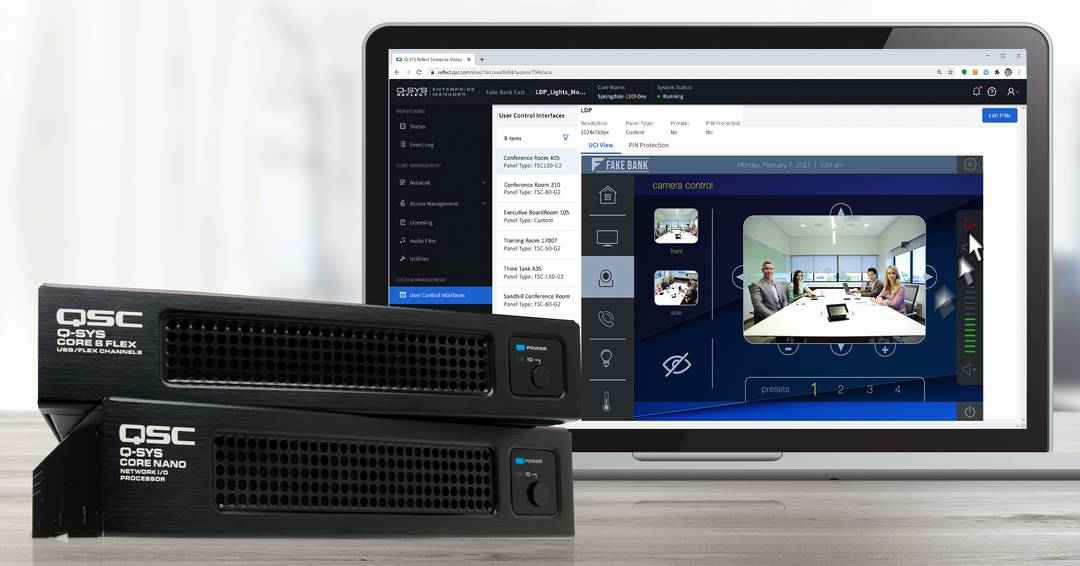 Costa Mesa, Kalifornien (19. Januar 2021) – [De, Fr, Es] – QSC freut sich, die Verfügbarkeit der neuen Professional Tier-Funktionen für den Fernüberwachungs- und -verwaltungsdienst Q-SYS Reflect bekannt zu geben. Diese fortschrittlichen Funktionen ermöglichen sowohl den Fernzugriff auf UCIs für Helpdesk-Anwendungen als auch die Fernaktualisierung von Systemen und Konstruktionsdateien. Darüber hinaus hat QSC mit der Auslieferung von zwei kürzlich vorgestellten Q-SYS Core-Prozessoren begonnen: dem Q-SYS Core Nano, einem reinen Netzwerk-I/O-Prozessor, und dem Q-SYS Core 8 Flex, der Netzwerk- und analoge I/O-Verarbeitung bietet (ab sofort in Nordamerika erhältlich, in EMEASA ab Frühjahr verfügbar).