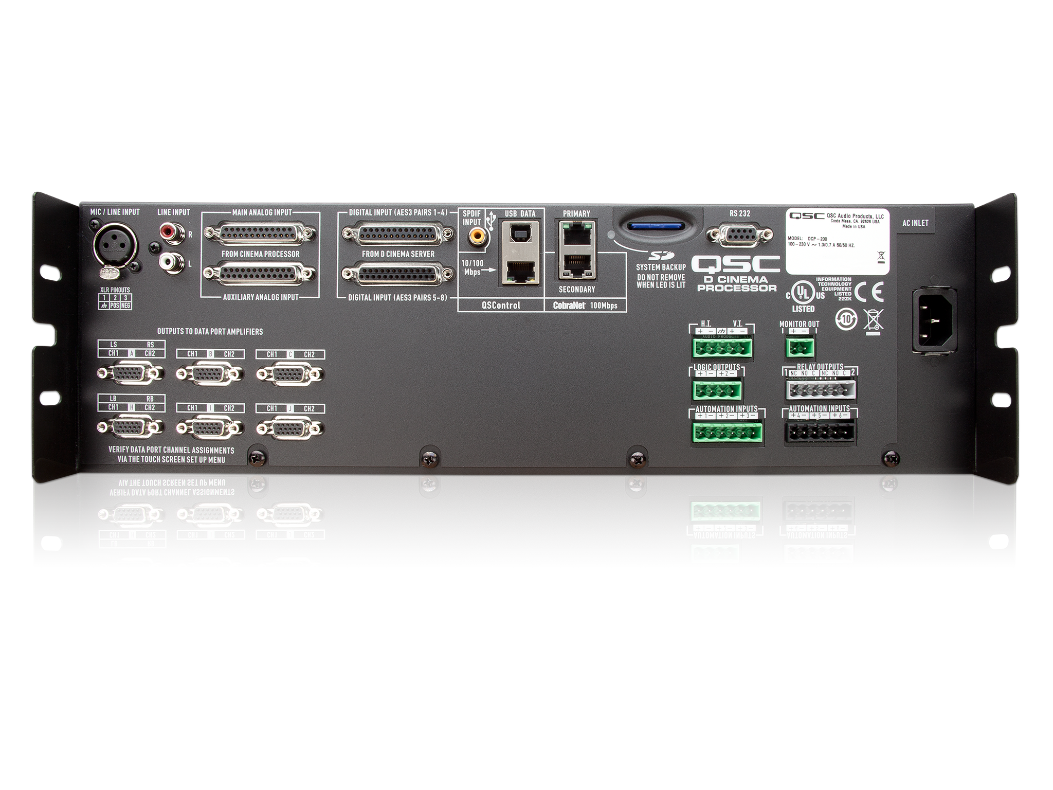 Rückansicht des DCP–200 Digitaler Signalprozessor