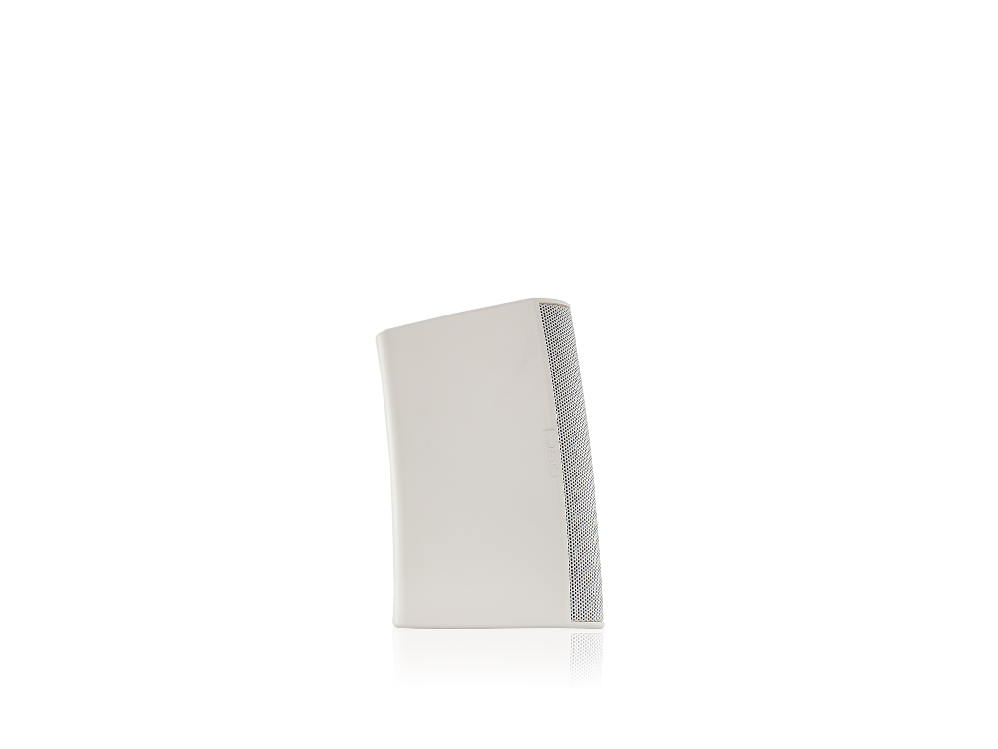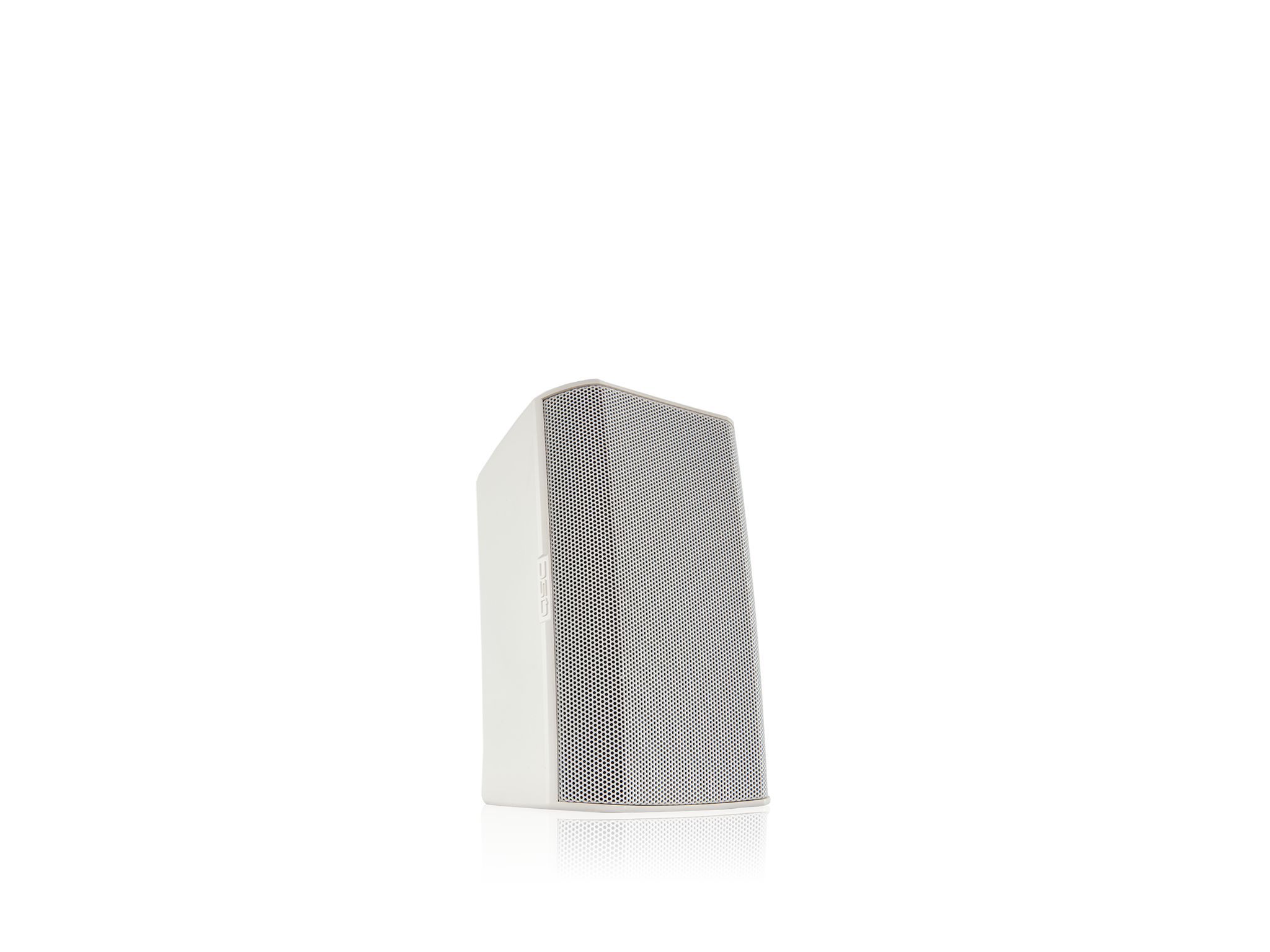 Front Right Angle Image of the White AD-S4T Loudspeaker with Grille