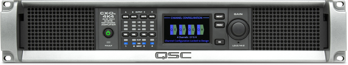 Vorderansicht der vernetzten CX-Qn 4K4 Endstufe.
