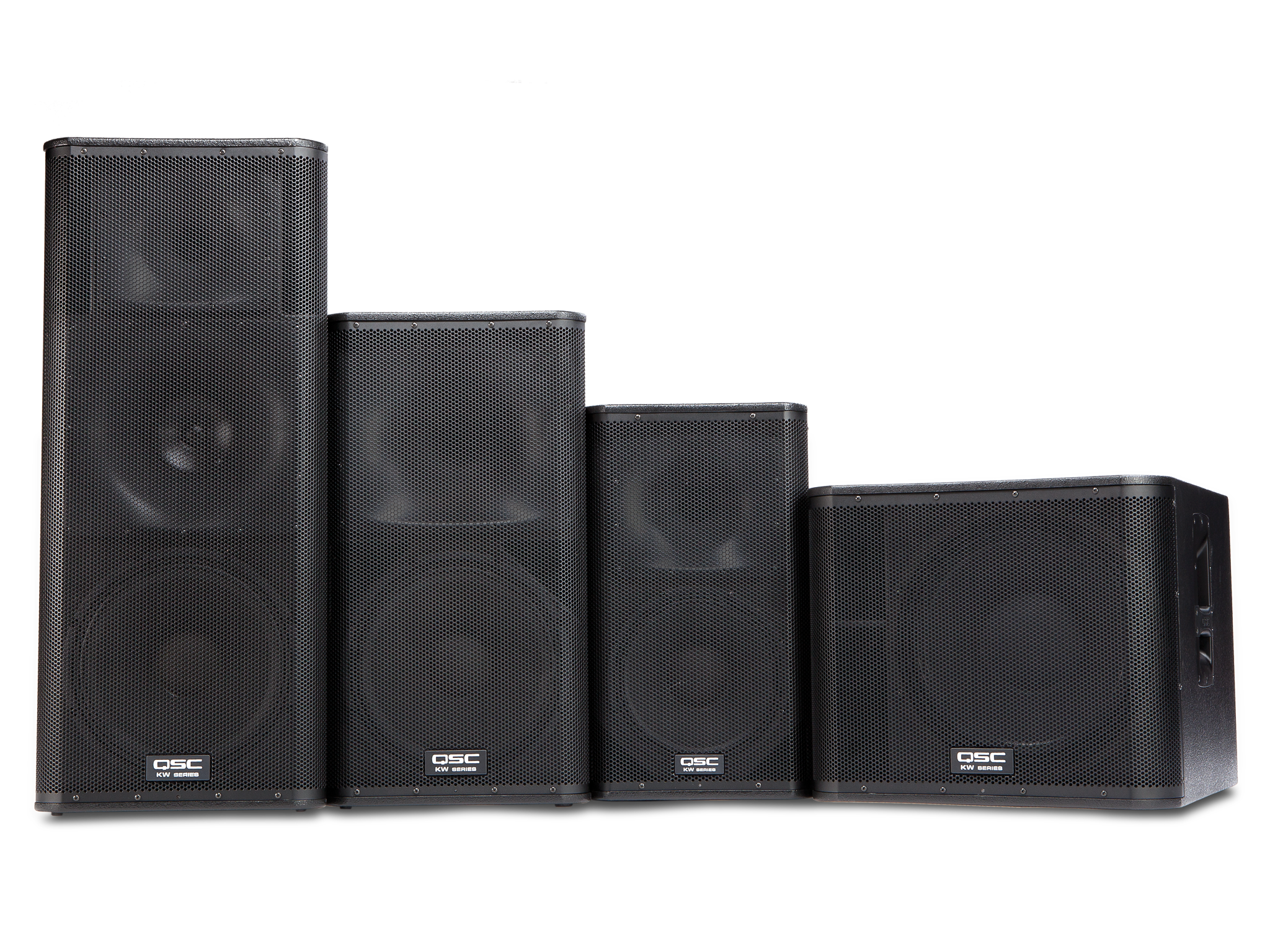 Photo of KW Series family of powered loudspeakers: KW122, KW152, KW153, and KW181.