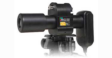 The VCC-102 Video Convergence Camera precisely images the convergence pattern onto a laptop screen, enabling a technician to make precise adjustments to the digital projector.