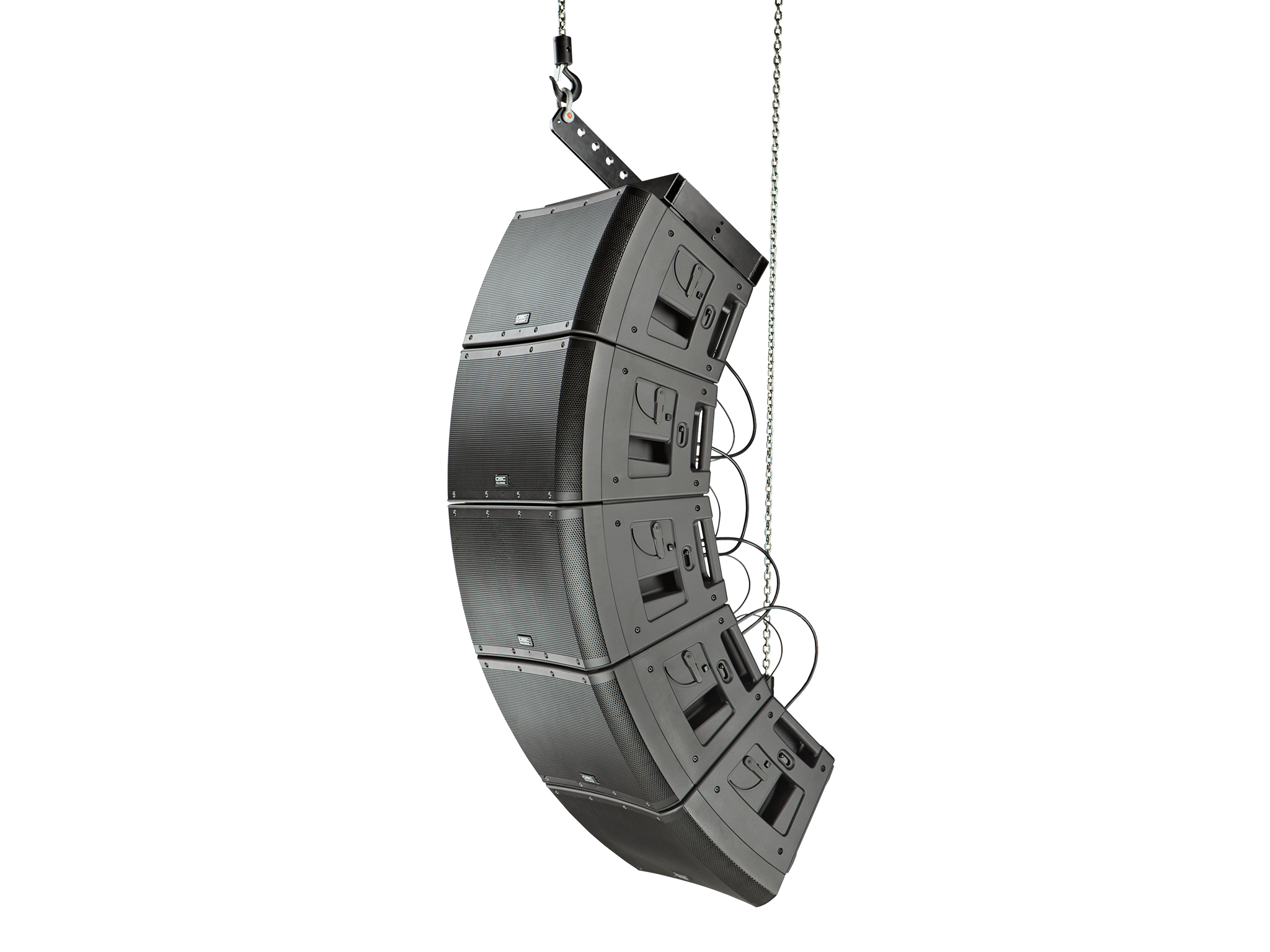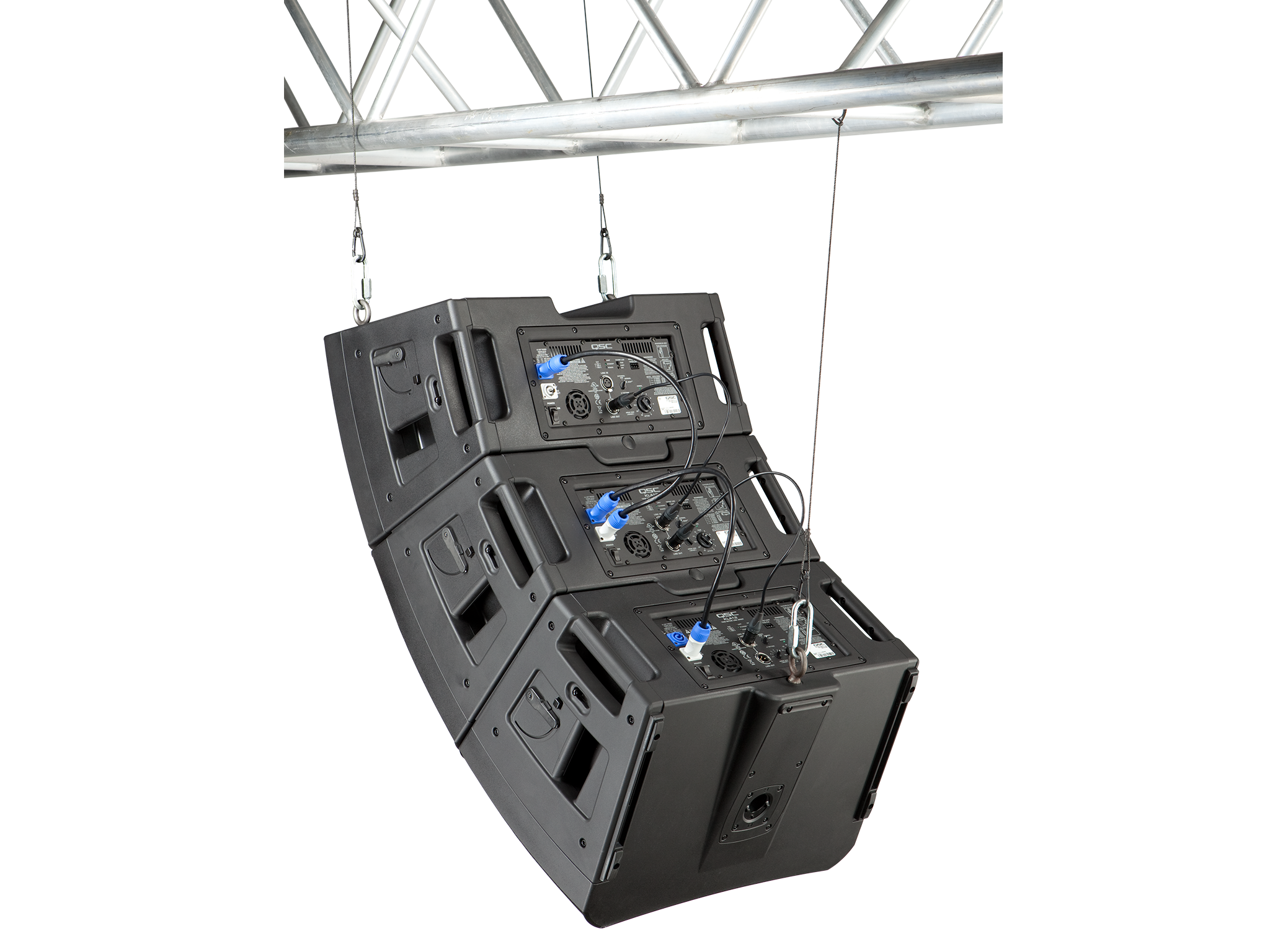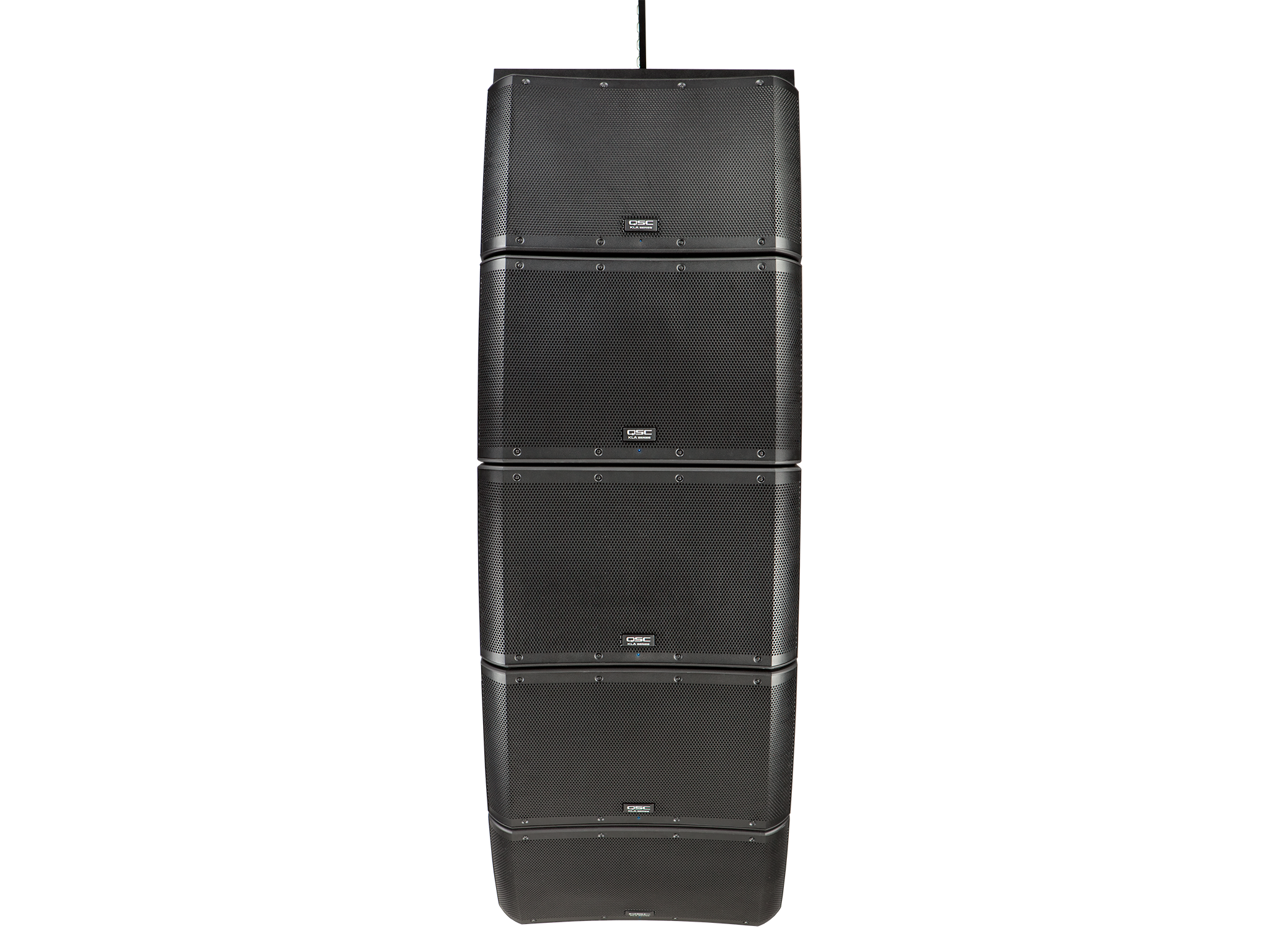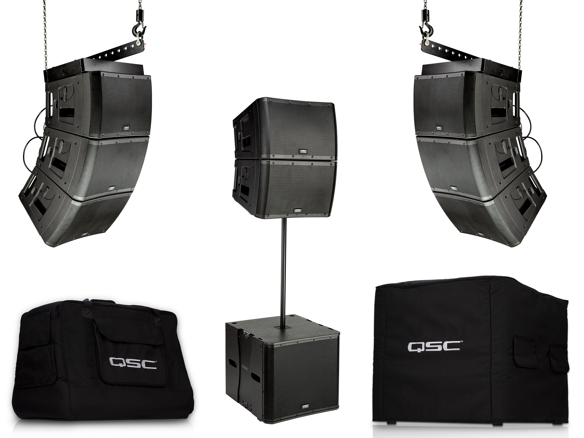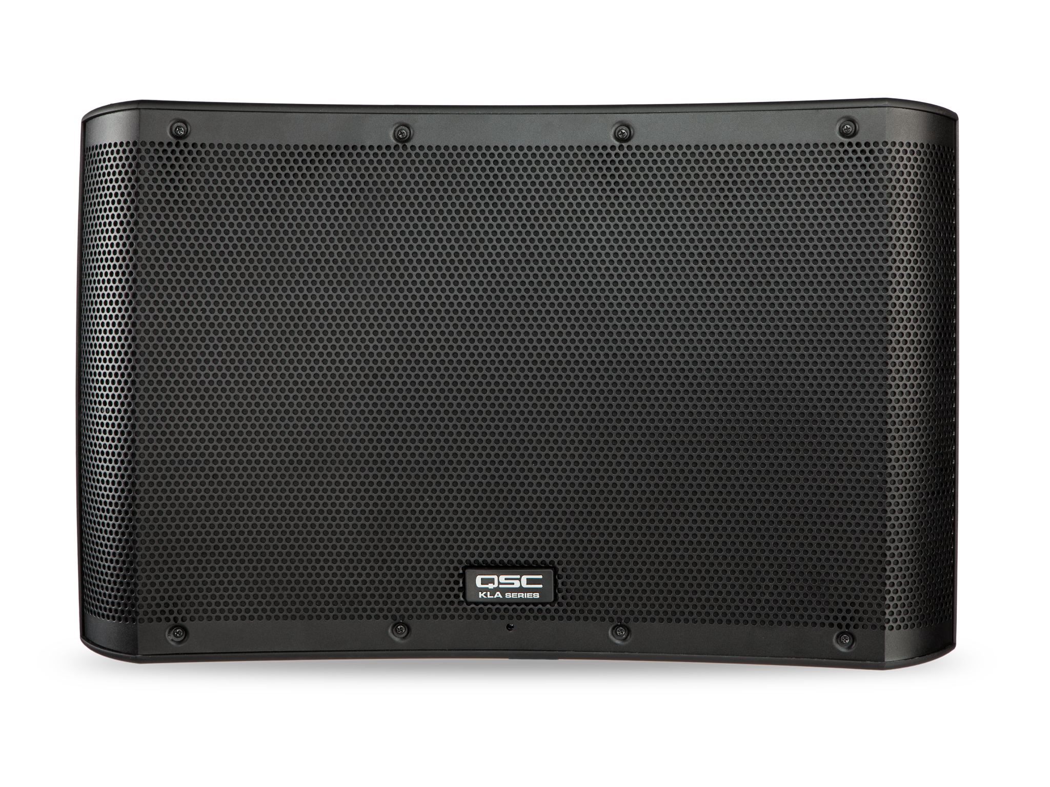 Logo side view of KW181 powered subwoofer in its accessory soft cover.