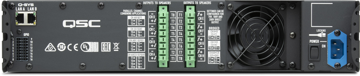 Vernetzte CX-Q 4K8 Endstufe, Rückansicht