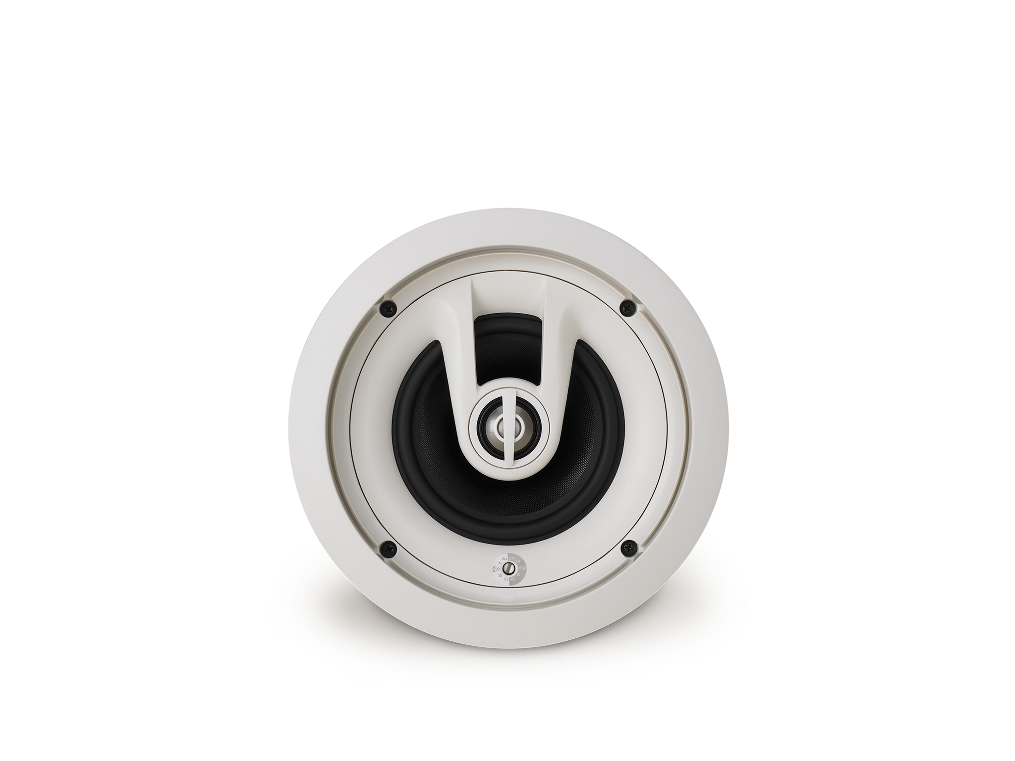 Face view, without grille, of AD-Ci52T ceiling mount loudspeaker with built-in transformer, for contactors, installers, and integrators.