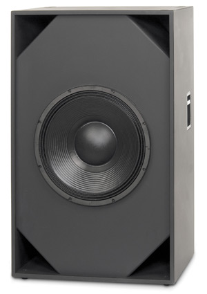Angle view of SB-5218 dual 18" subwoofer for cinema sound.