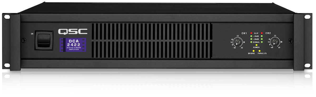 Front view of the DCA2422 power amplifier, a two-channel model designed for cinema applications.