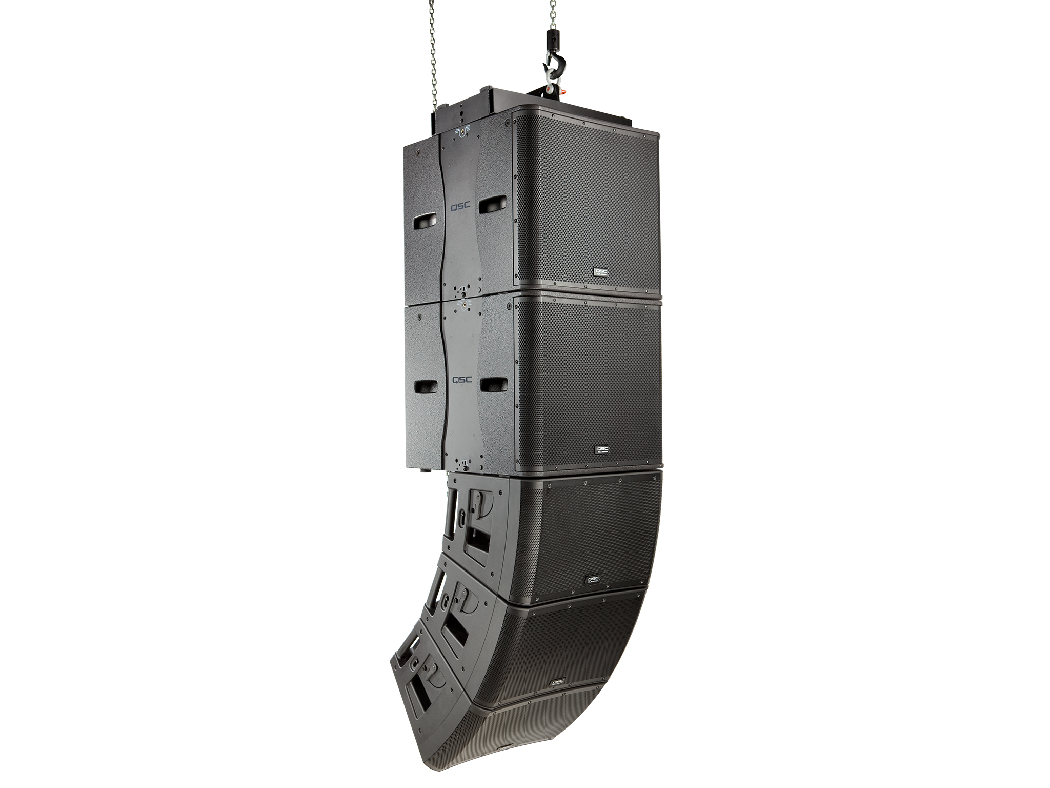 Front Angle image of 2 KLA 181 subs with 3 KLA 12 loudspeakers