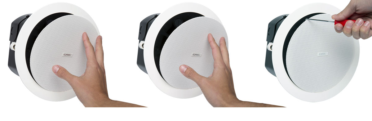 Hängende Ansicht des weißen AD-P4T Lautsprechers