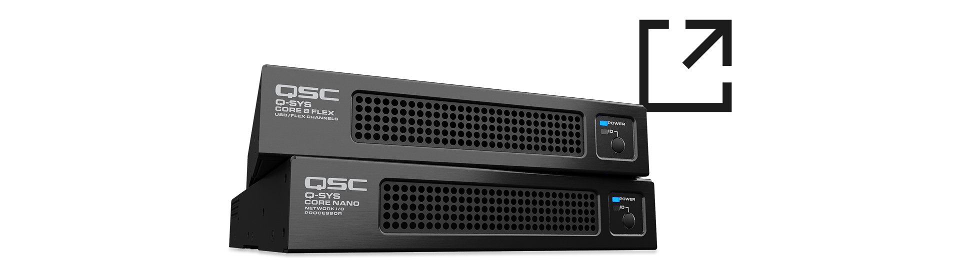 - Core 24f, Server Core X10 und Server Core X20r erfordern Q-SYS Designer v10.0 oder höher. Für Core 610 ist Q-SYS Designer v9.9 oder höher erforderlich, um die SLDAN-256-P-Lizenz hinzuzufügen.